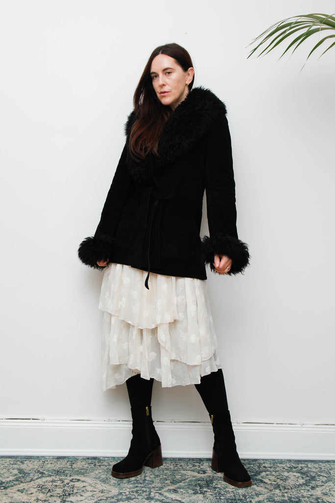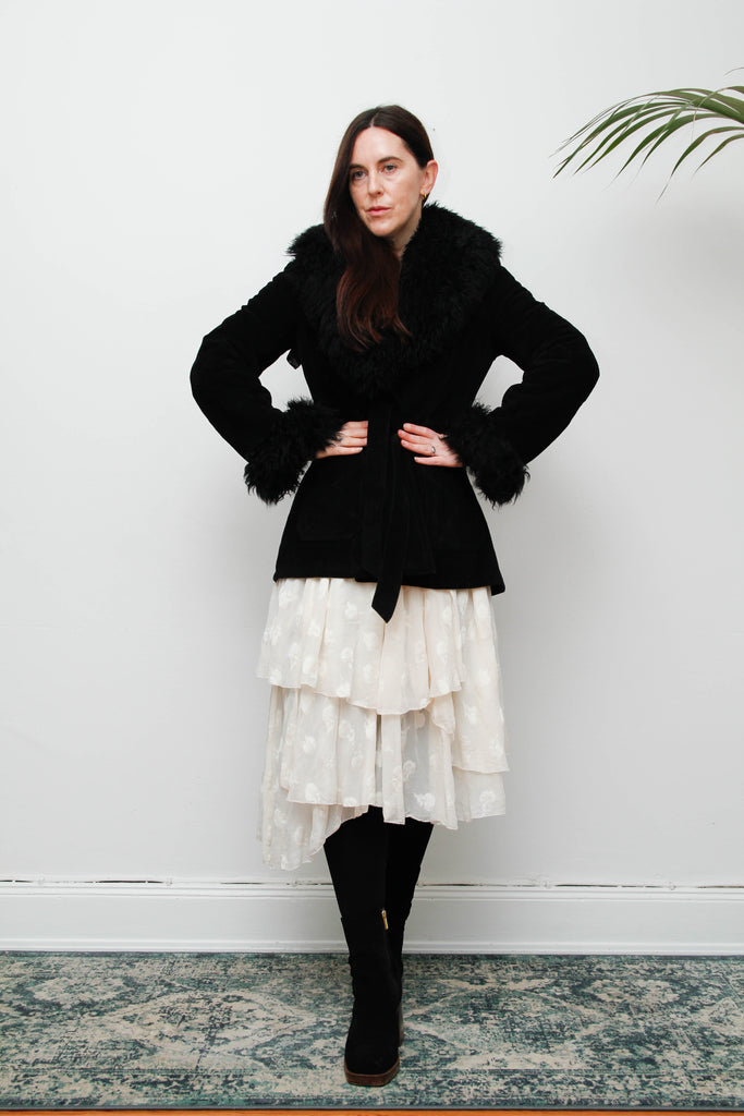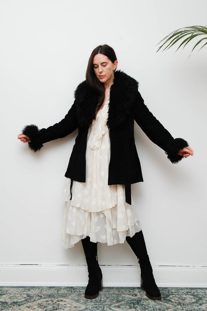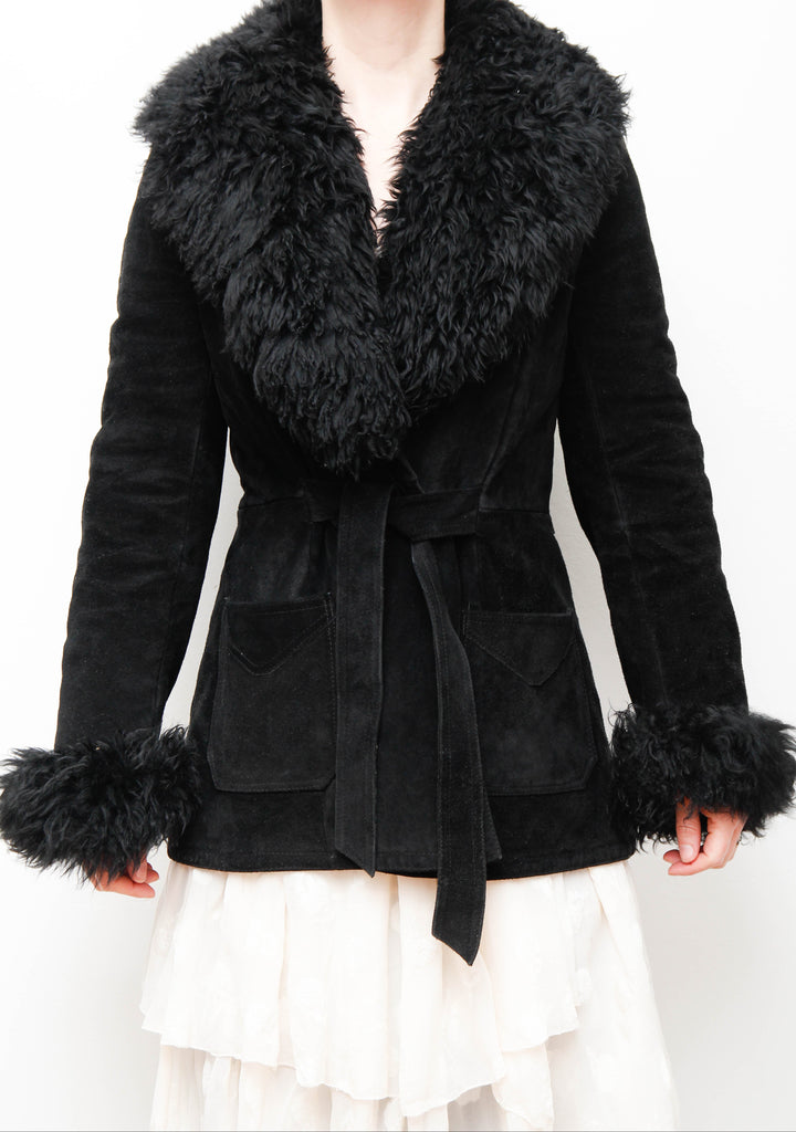 Vintage 70s Penny Lane Sheepskin Coat – Gothic Black Suede