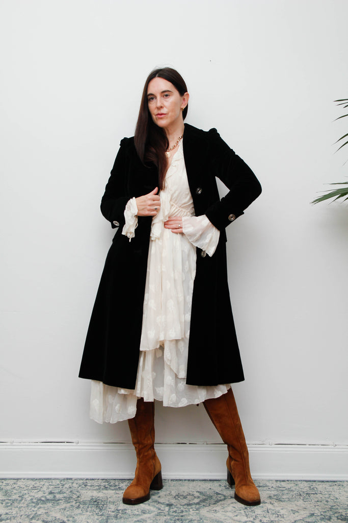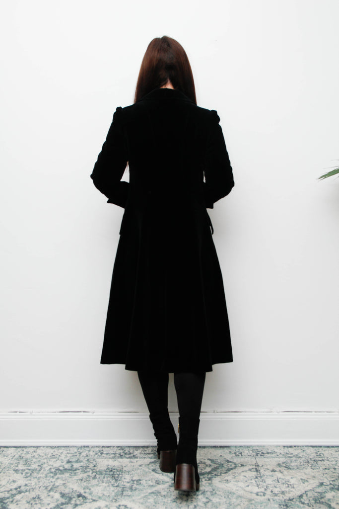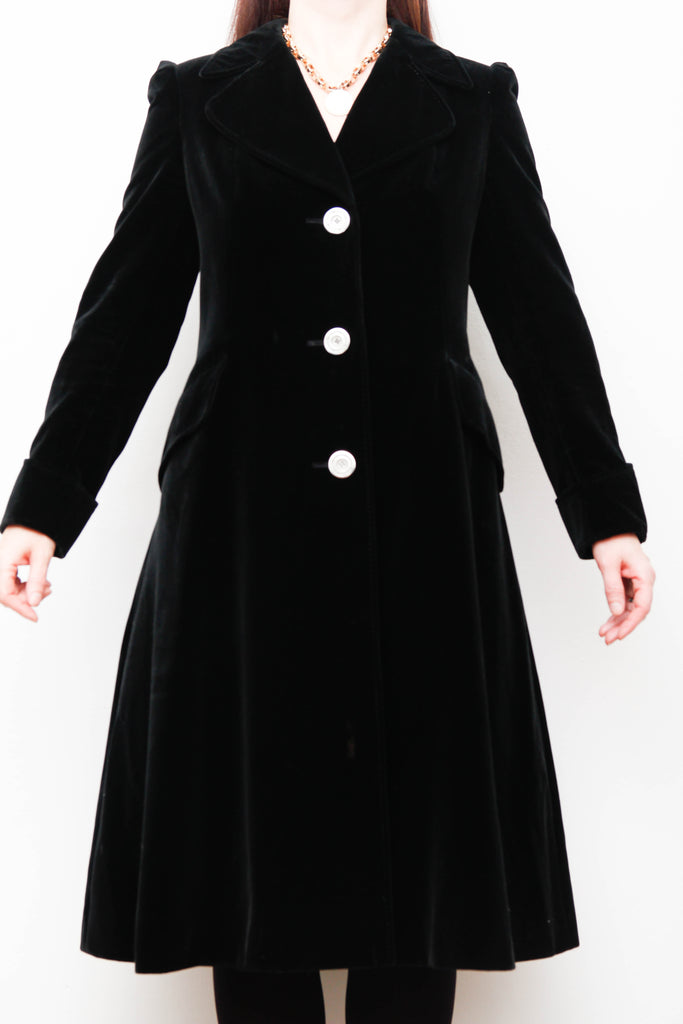 Vintage 1940s-Style Black Cotton Velvet Coat – Regal Bohemian Gothic