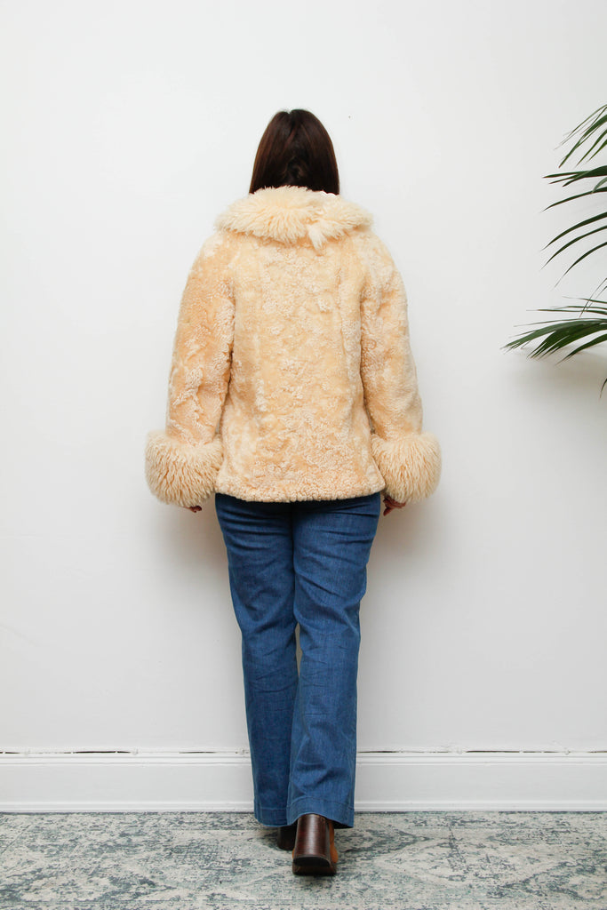 Vintage 1970s Sheepskin Suede Coat – Warm Cream Fur Trim