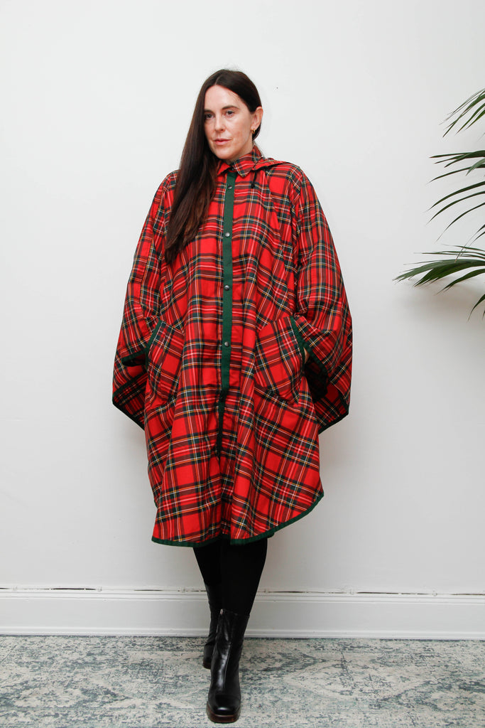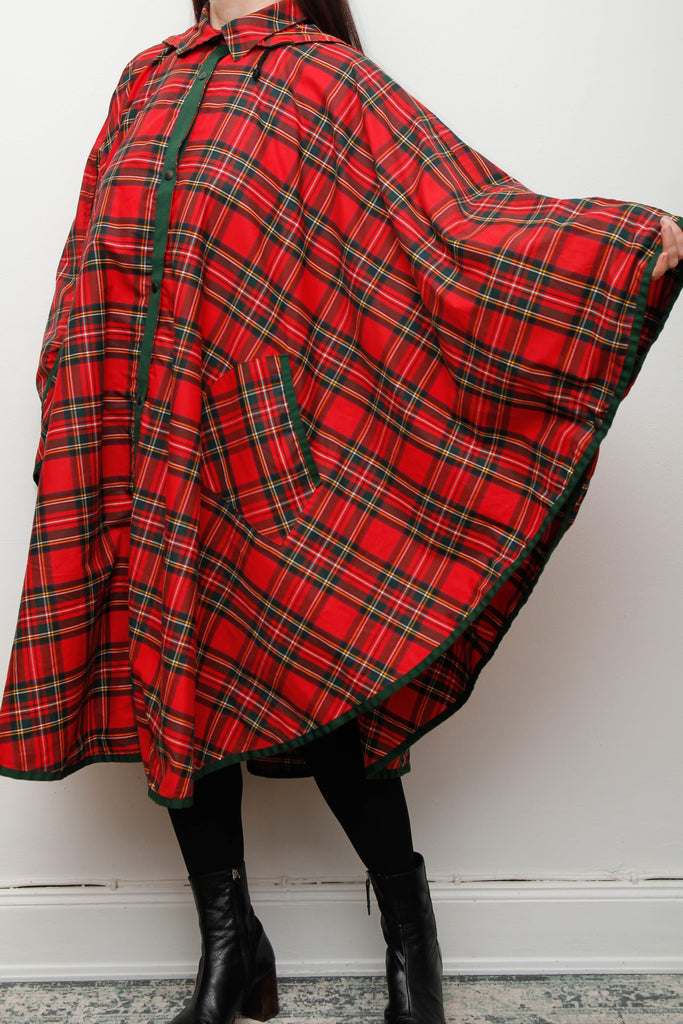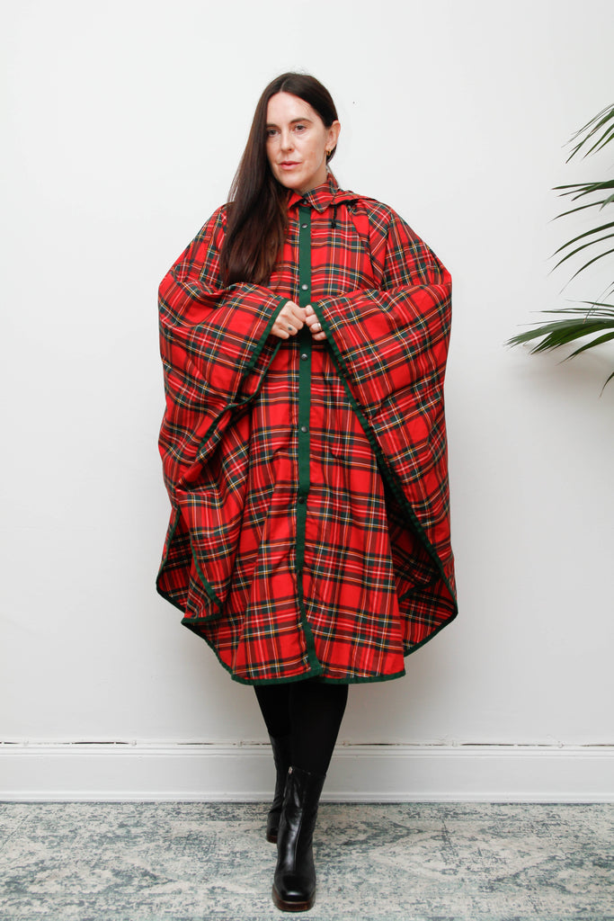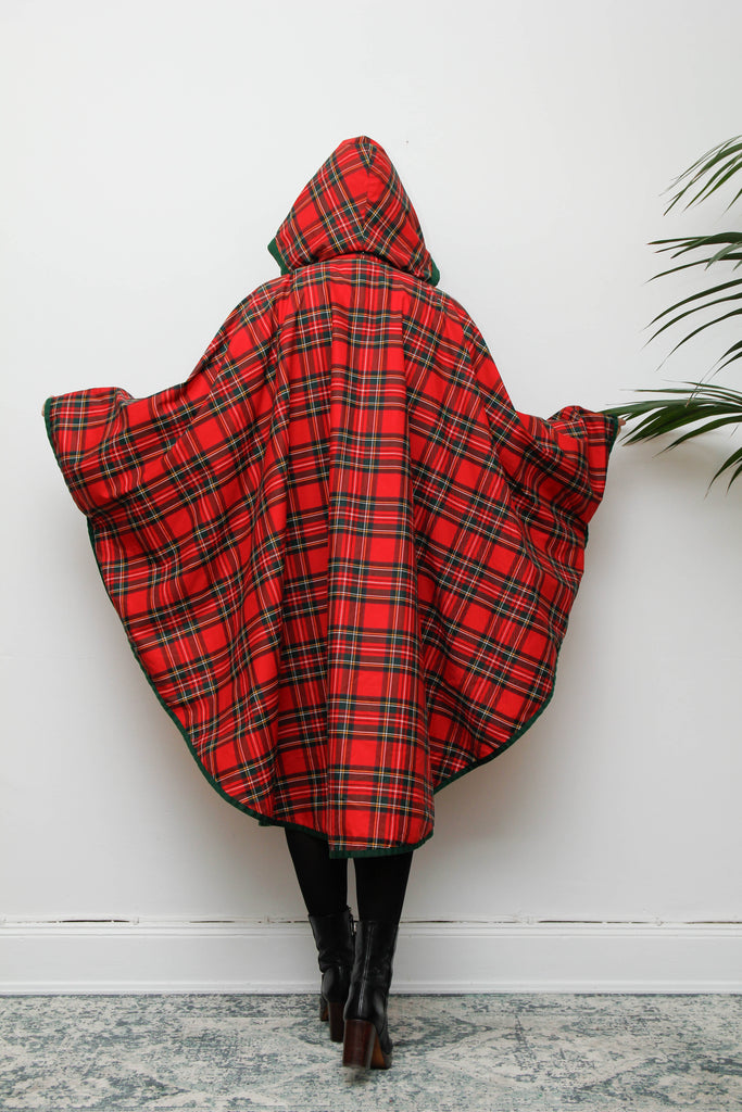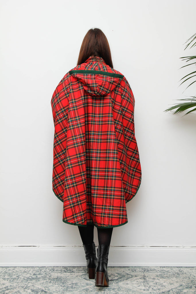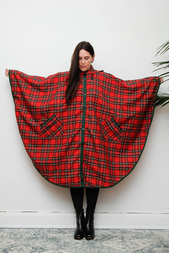 Vintage Scottish Tartan Cape – Removable Hood & Wide Sleeves