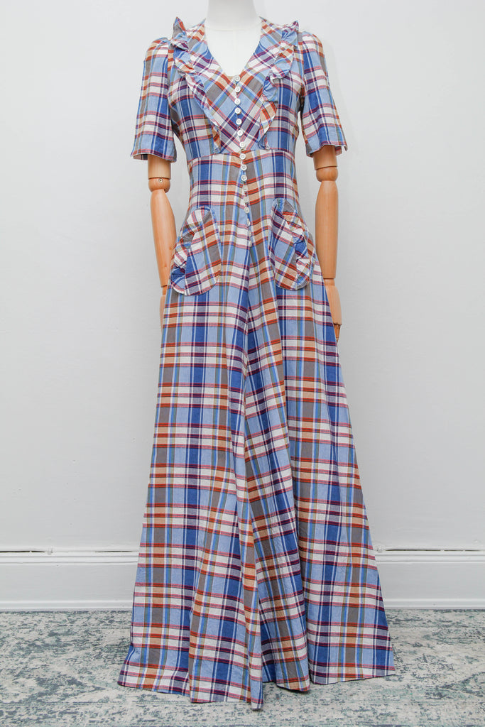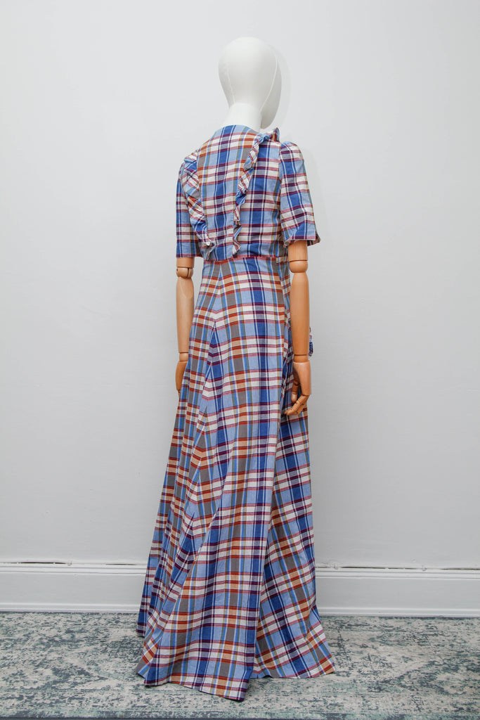 1970's Betty Barclay Checked Paid Prairie Maxi Dress