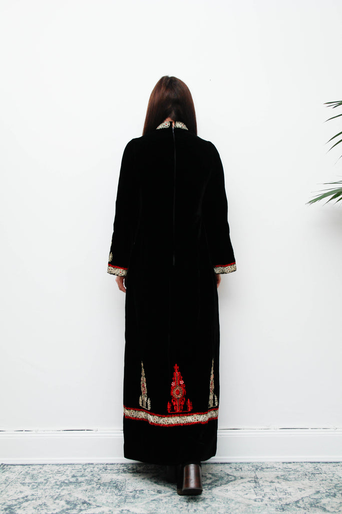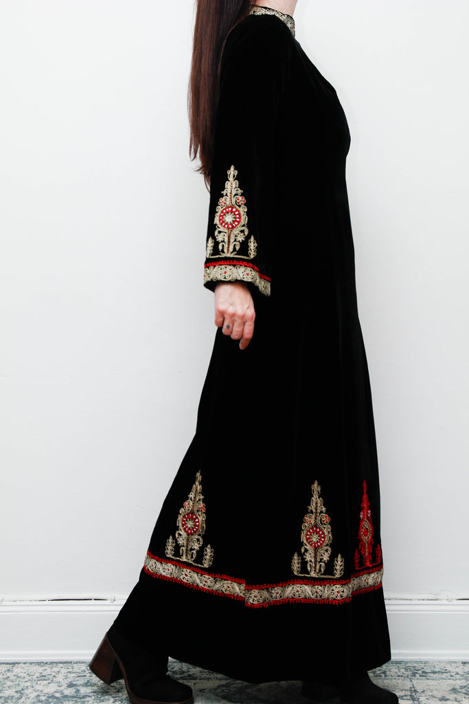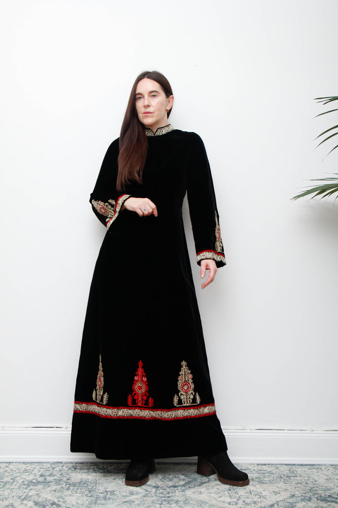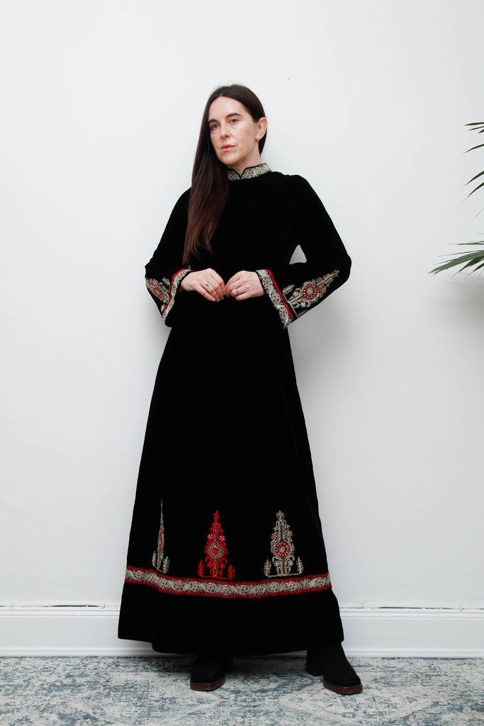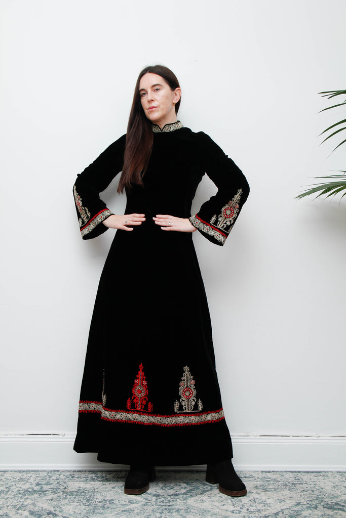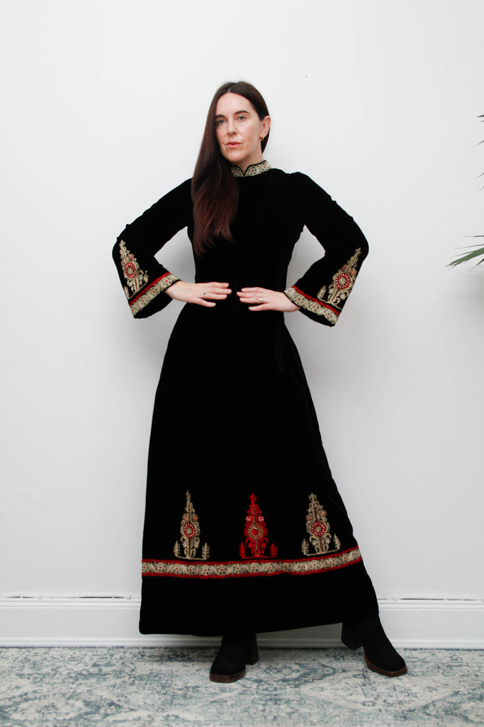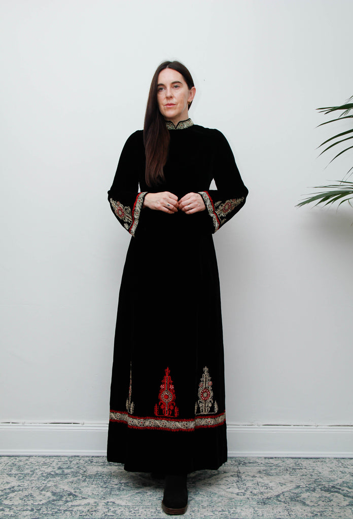 Rare Vintage Black Velvet Gown – Gold Embroidered Folklore 70s