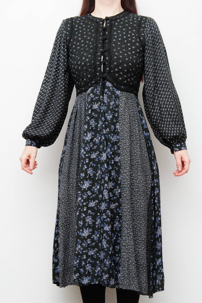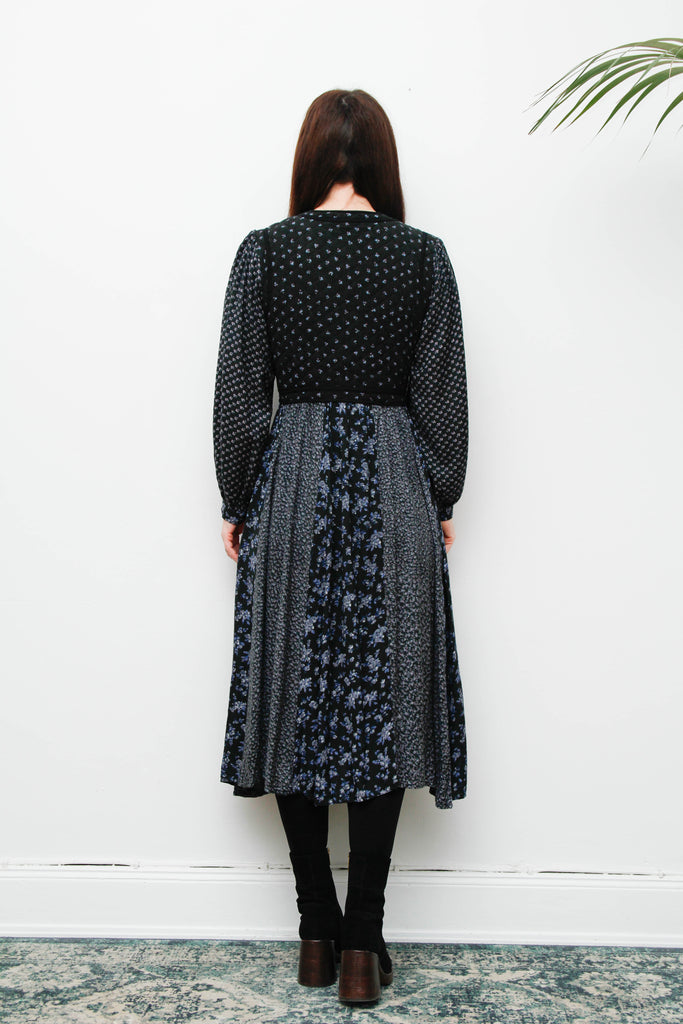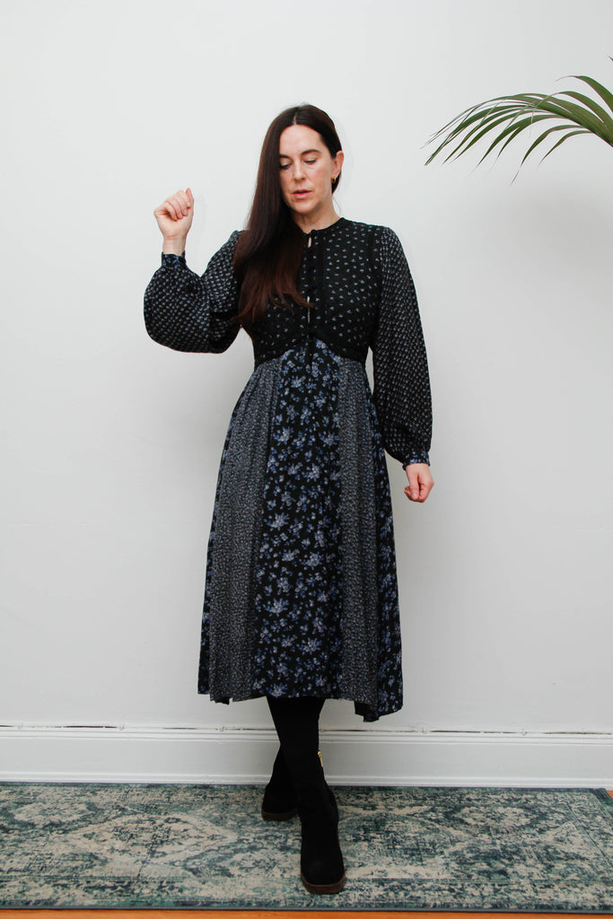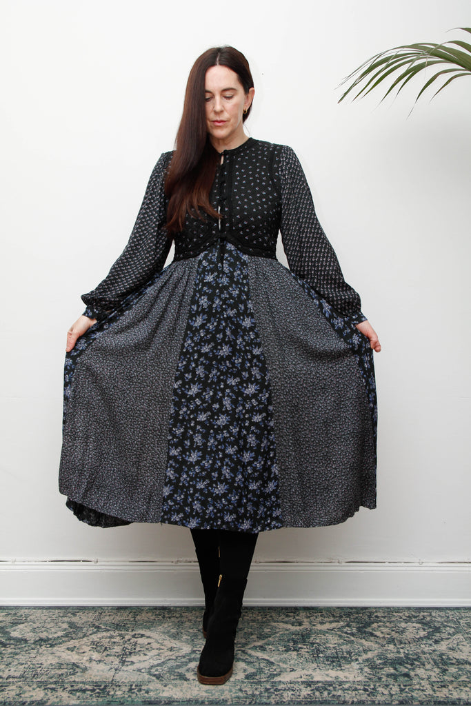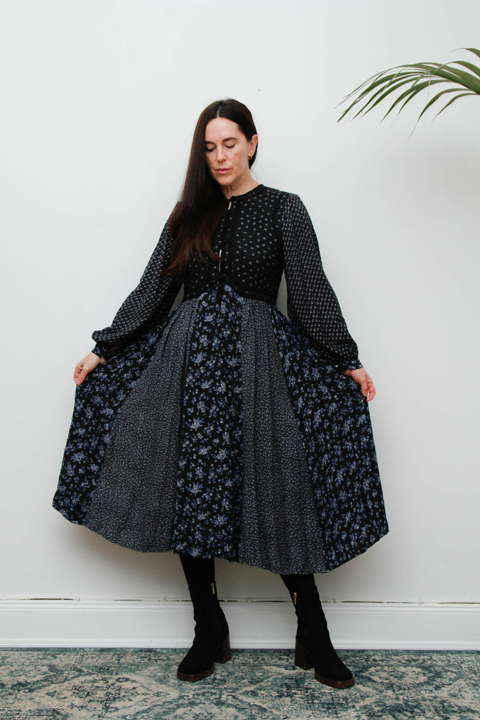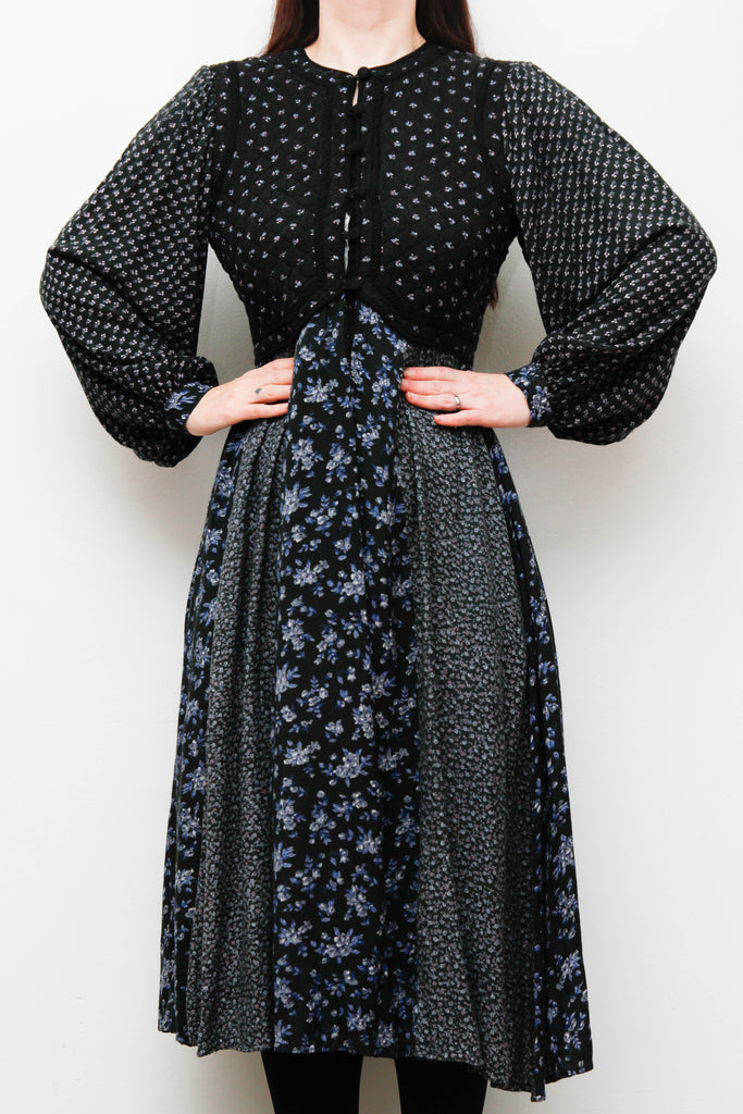 Vintage 1970s Floral Cotton Dress – Bohemian Navy & Purple