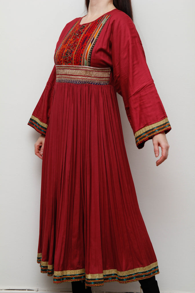 Vintage Afghan Bohemian Maxi Dress – Hand-Embroidered Gothic Rayon