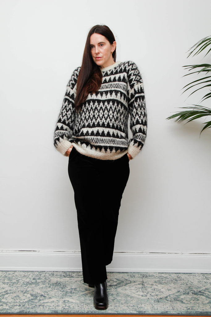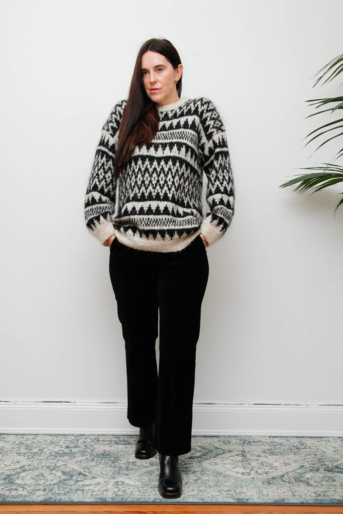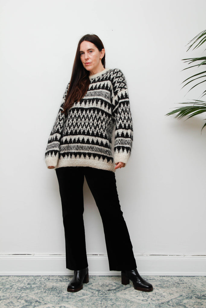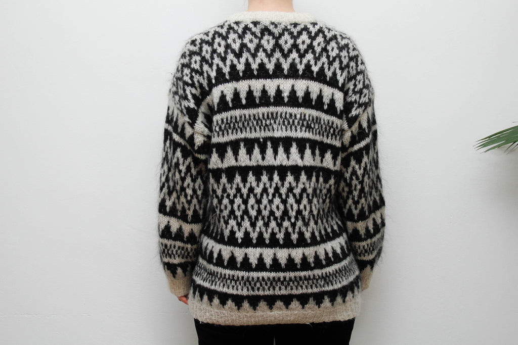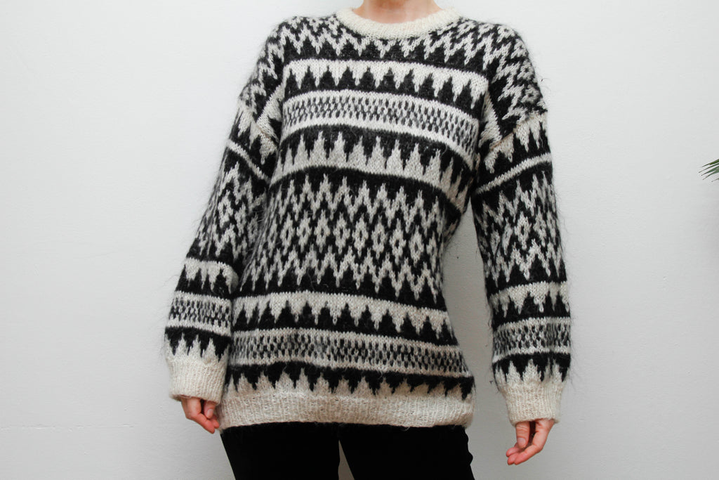 Vintage Hand-Knitted Wool Mohair Jumper – Gothic Black & White