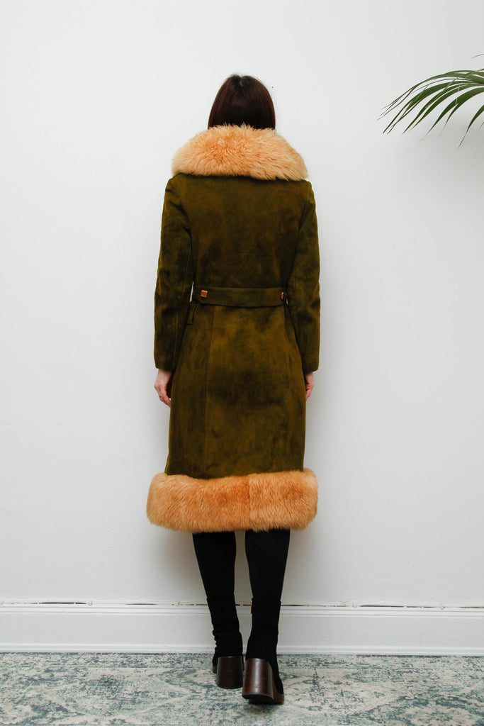 Vintage Green Olive Suede Sheepskin Coat – Rare Gothic Princess Style