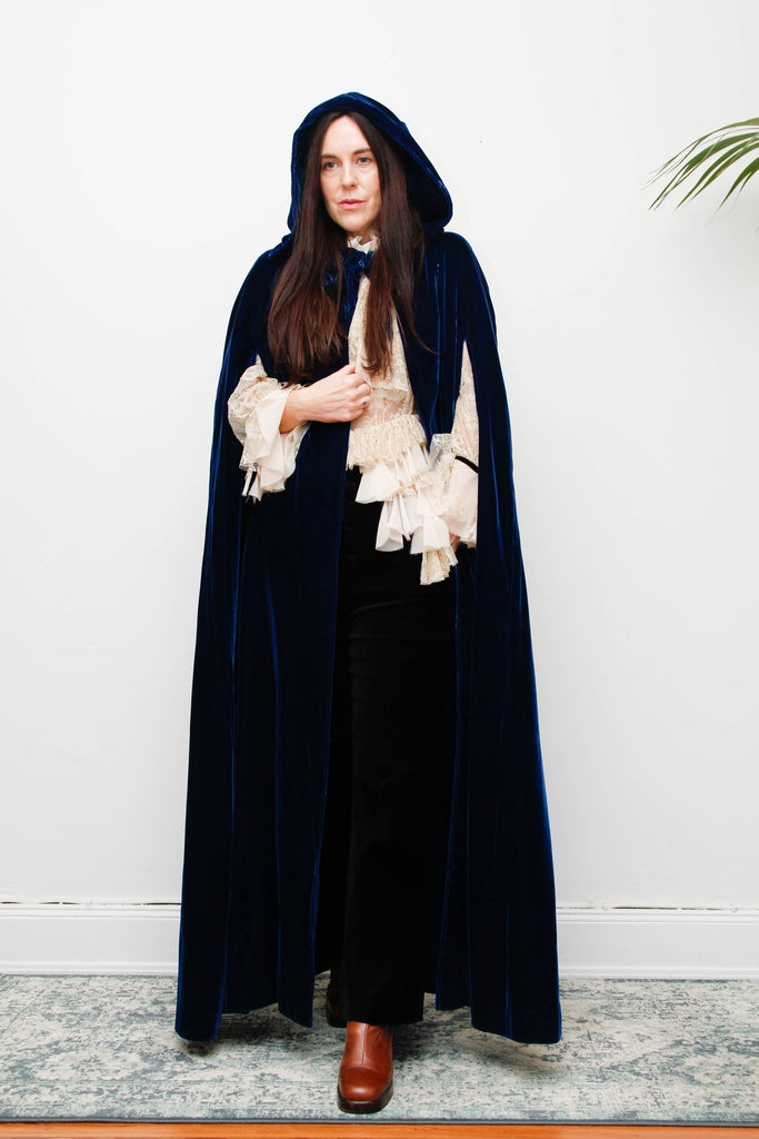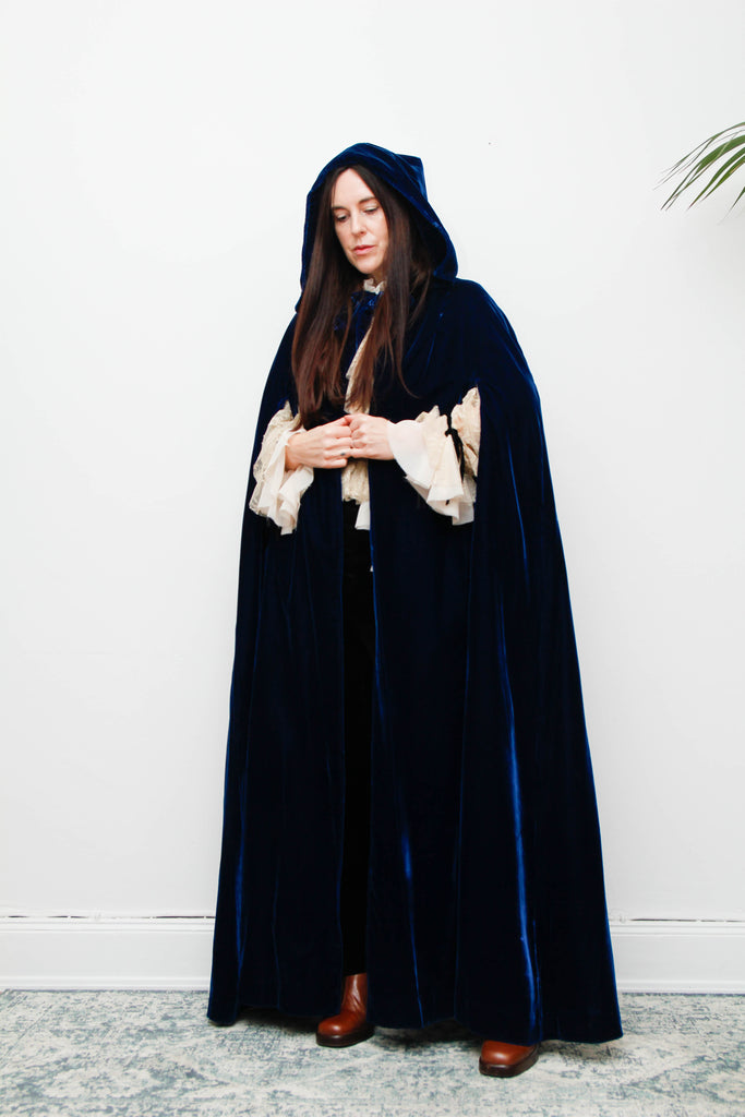 Vintage Gothic Opera Cape – Sapphire Blue Cotton Velvet